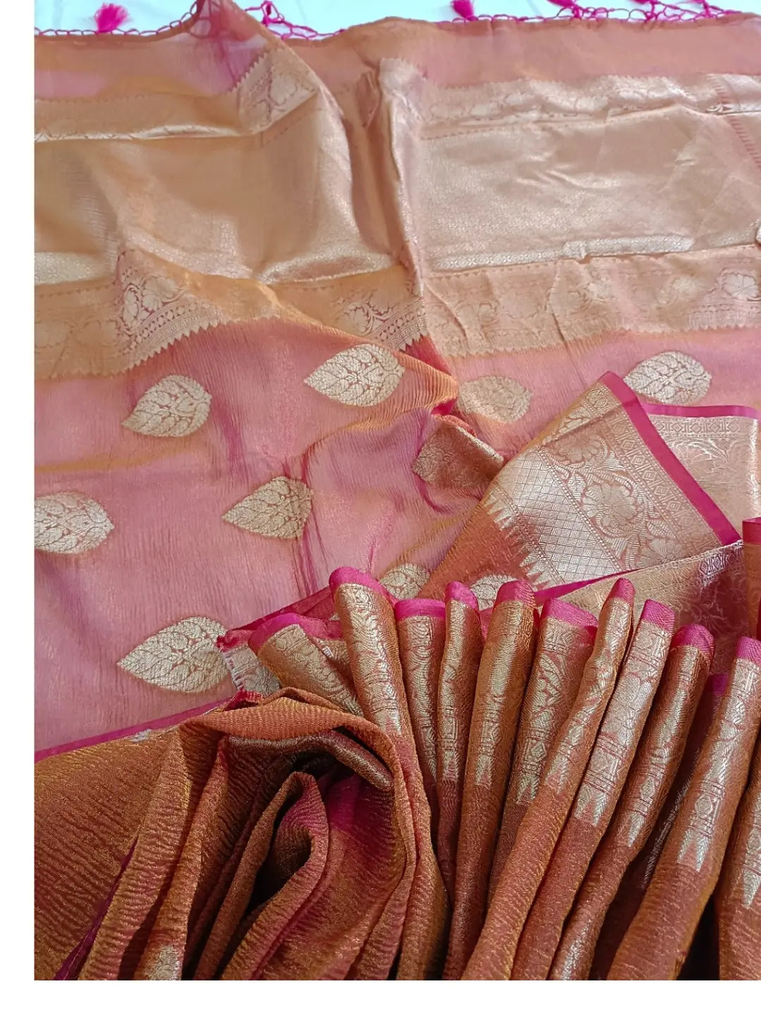 ✅ Fabric: Authentic Banarasi Katan Crushed Tissue Silk 🌿